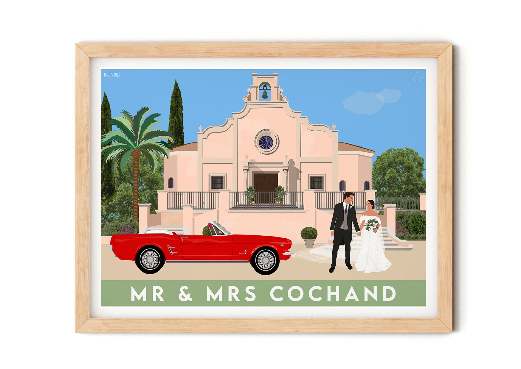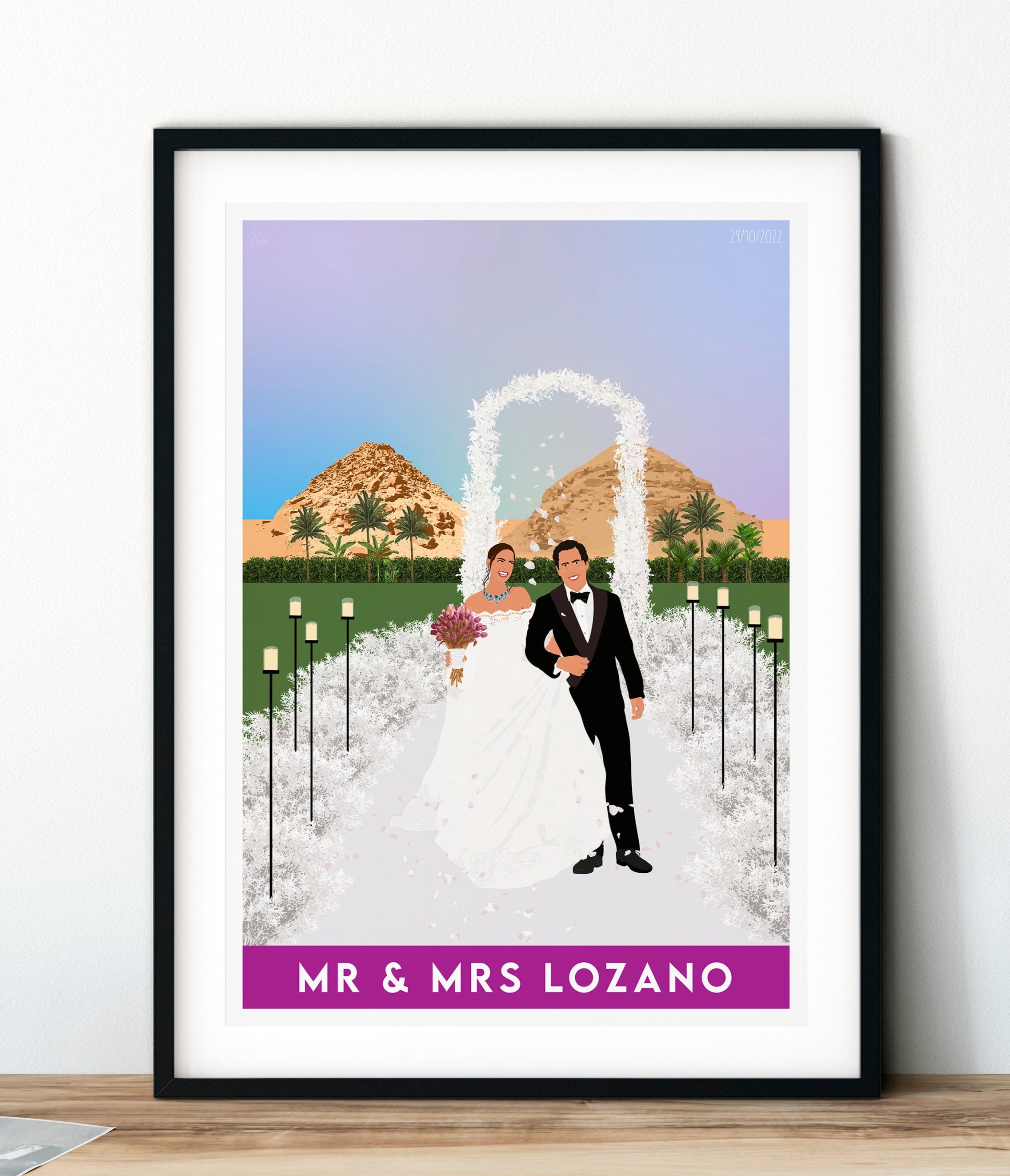Conmemora tu día especial con una ilustración personalizada. Incluso puedes añadir un vale a tu lista de regalos para que tus amigos y familiares puedan contribuir.