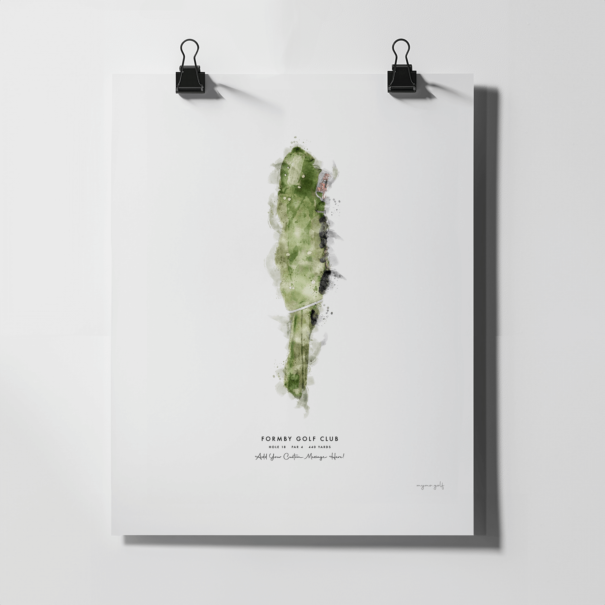 Add your own message beneath the course and hole details to make your Formby art print truly personal. Whether marking a special round, celebrating a golfing milestone, or surprising someone who loves the game, your customised text turns this artwork into a lasting keepsake.