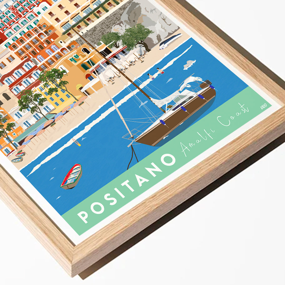 Choose between a black, white, or oak wood frame, complete with high-quality glass and a bright white window mount, ready to bring the allure of Positano to your wall.