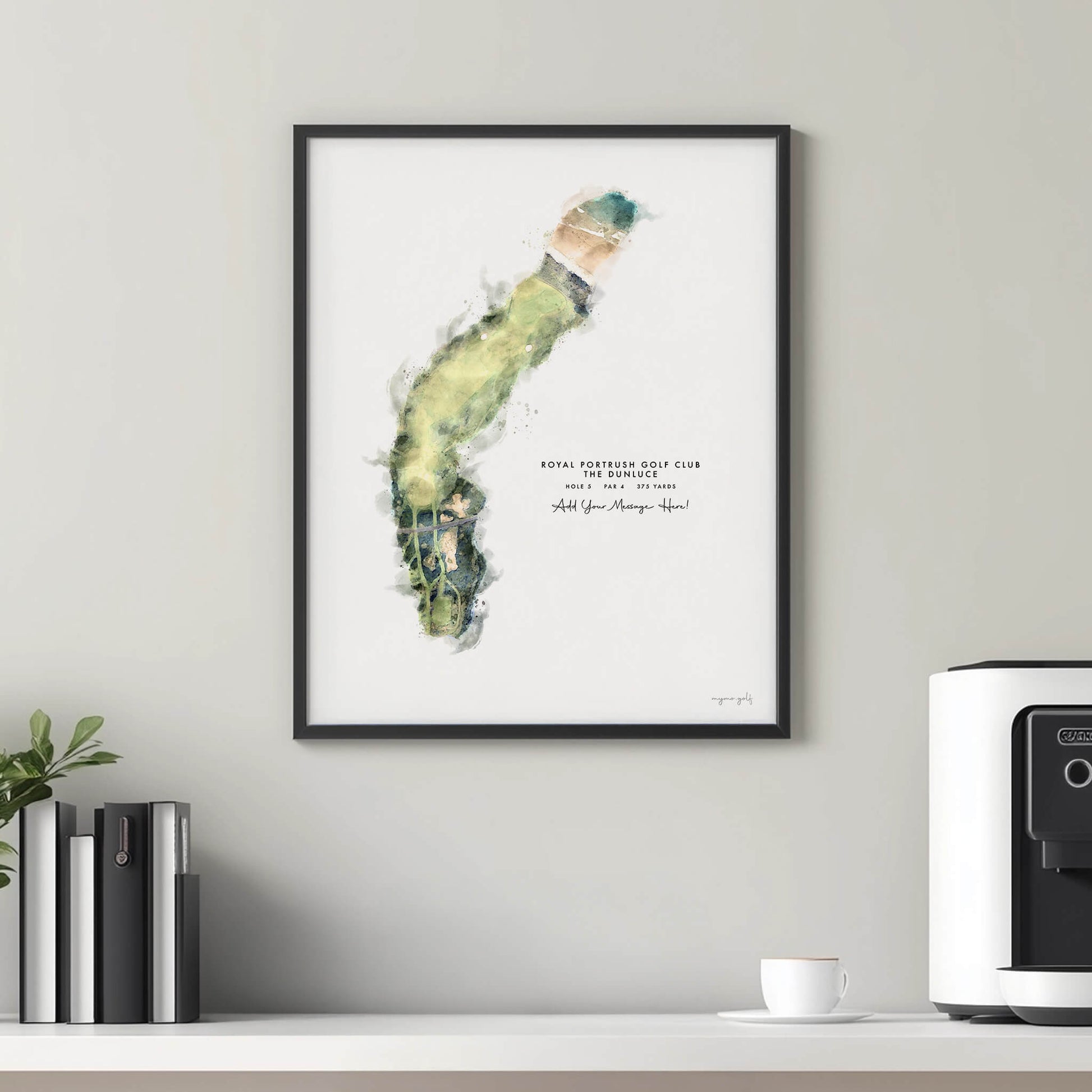 Make your Royal Portrush Golf Art Print even more special by adding a personal message beneath the course and hole details. Whether it’s commemorating a once-in-a-lifetime trip, celebrating a golfing milestone, or surprising a loved one, your custom text transforms it into a one-of-a-kind treasure.